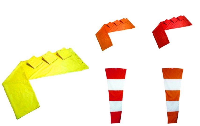 As cores do cone de vento fabricado pela empresa são definidas de acordo com as diversas normas reguladoras do setor: amarelo, laranja, vermelho, laranja com branco; e verde e azul para as áreas decorativas. A Aeroind entrega os equipamentos solicitados, incluindo o cone de vento, em até 20 dias para todas as regiões do Brasil. No caso de montagem de birutas e outras ferramentas, os profissionais da empresa realizam o serviço somente dentro do estado de São Paulo.